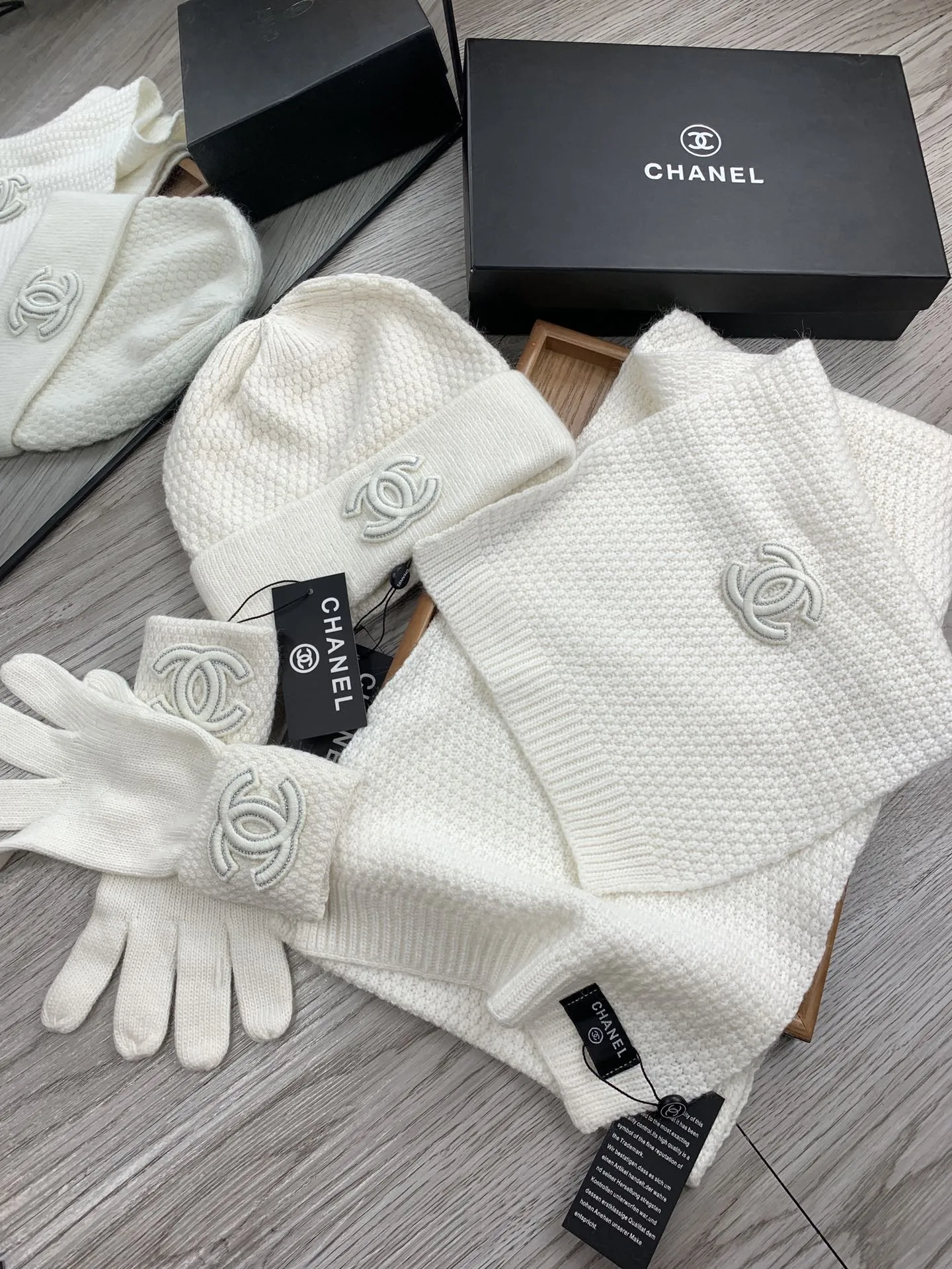 Replica Chanel Hat and Scarf and Glove Set with best quality.