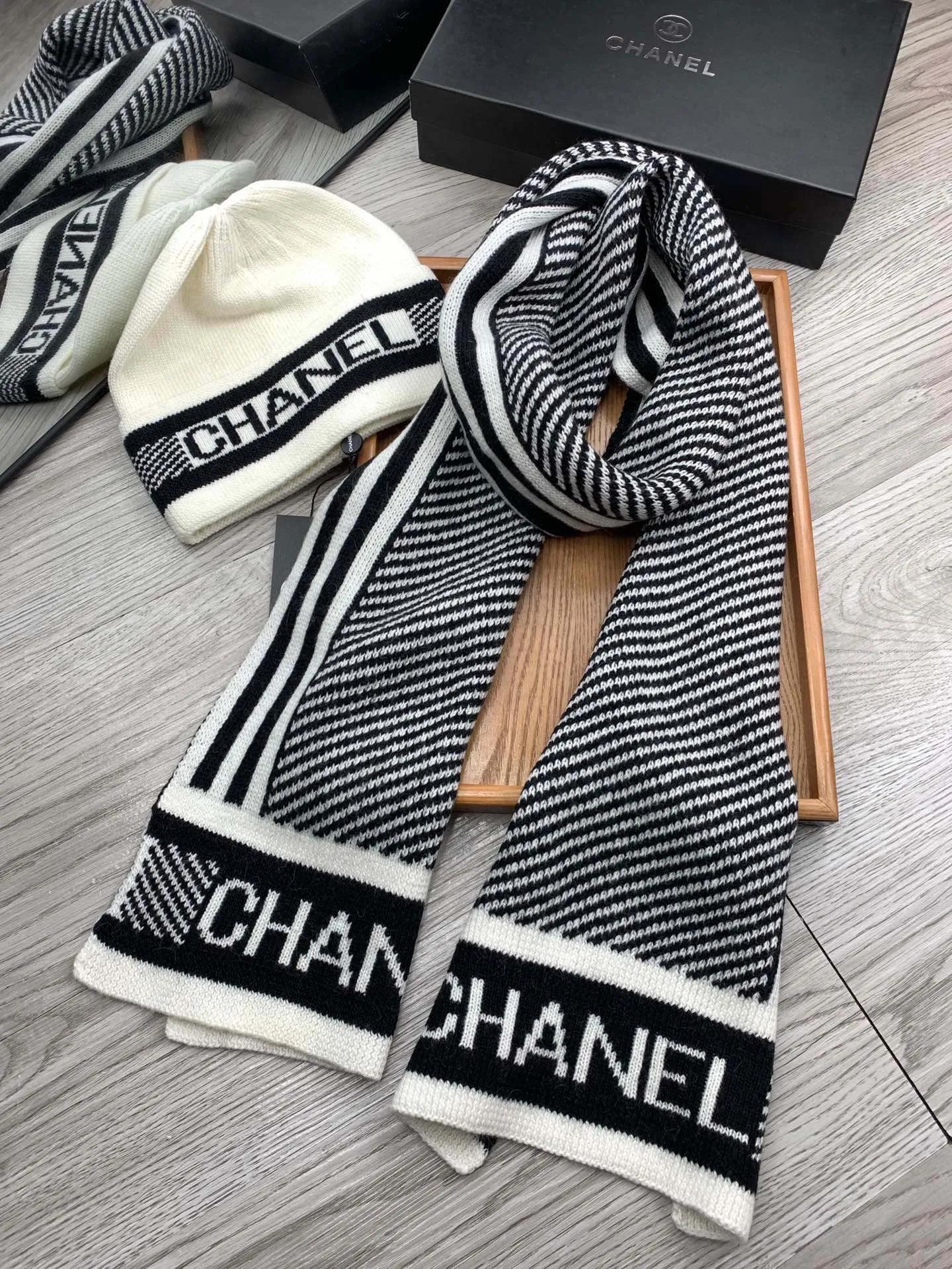 Replica Chanel Hat and Scarf Set #1396542 Wholeale Only $52.00 USD outlet! , Wholesale Replica Chanel Hat and Scarf and Glove Set latest arrivals enjoy free shipping and save up 70% OFF with best quality! Cheap Chanel Hat and Scarf Set #1396542 Replica Wholesale [$52.00 USD] [ITEM#1396542] on Replica Chanel Hat and Scarf and Glove Set