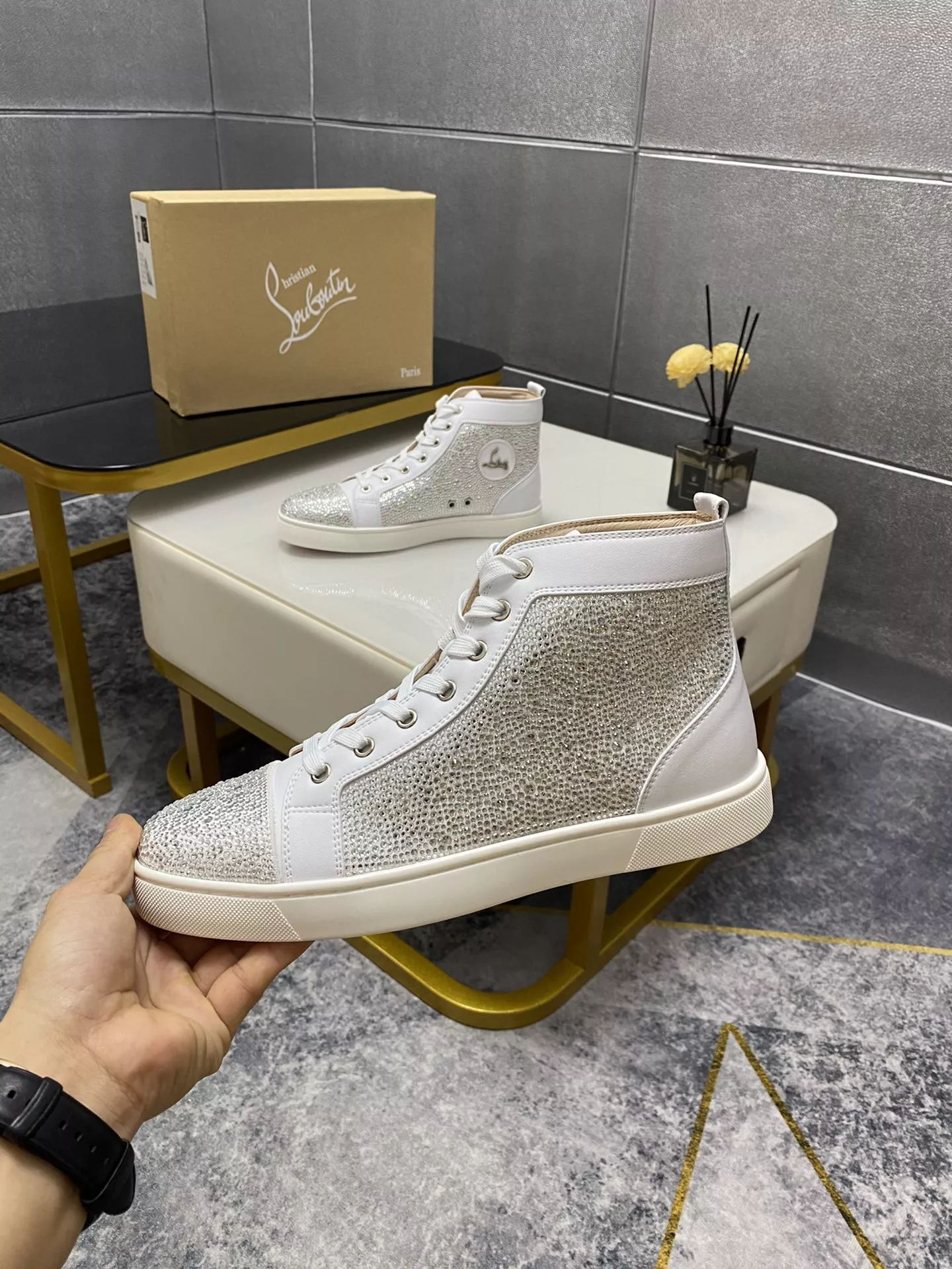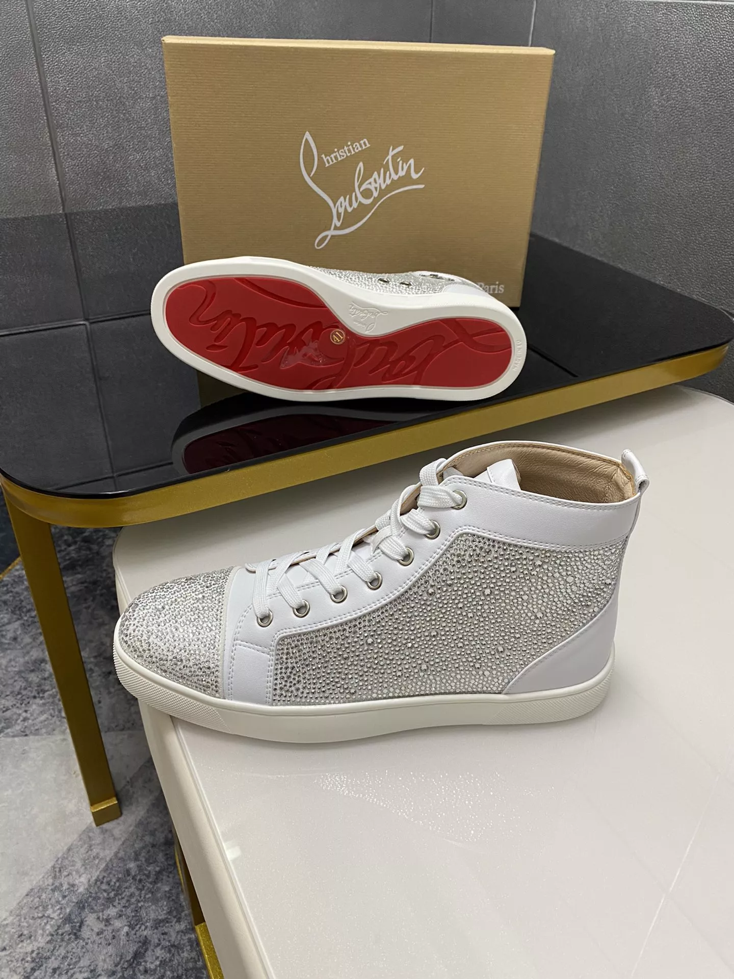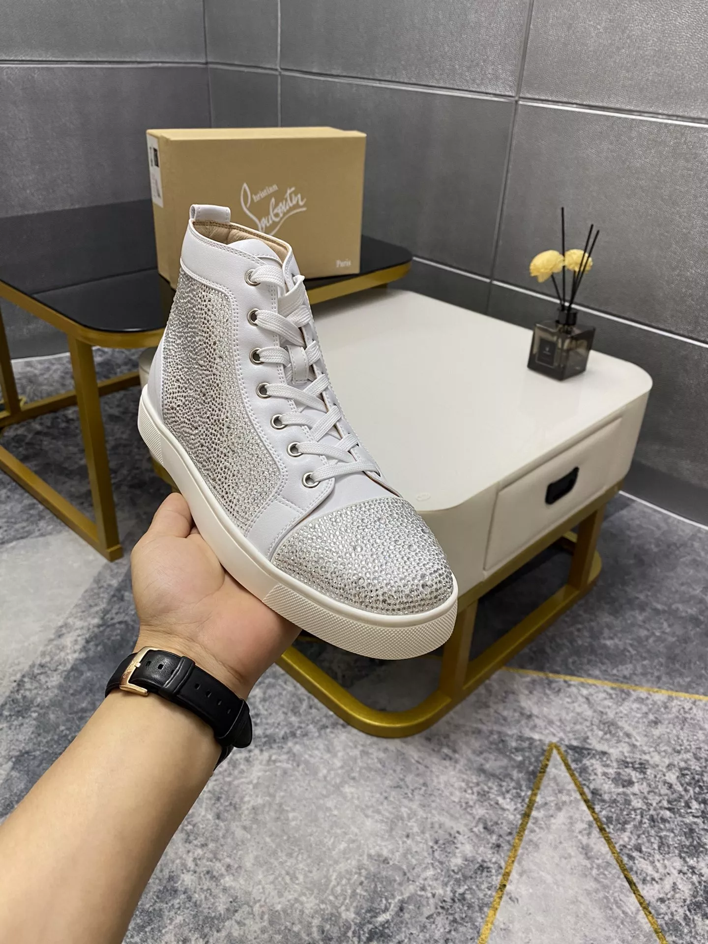 Replica Christian Louboutin High Top Shoes For Men #1381344 Wholeale Only $92.00 USD outlet! Gender MenSize US 4=EUR(38), US 5=EUR(39), US 6=EUR(40), US 7=EUR(41), US 8=EUR(42), US 9=EUR(43), US 10=EUR(44), Wholesale Replica Christian Louboutin High Top Shoes latest arrivals enjoy free shipping and save up 70% OFF with best quality! Cheap Christian Louboutin High Top Shoes For Men #1381344 Replica Wholesale [$92.00 USD] [ITEM#1381344] on Replica Christian Louboutin High Top Shoes