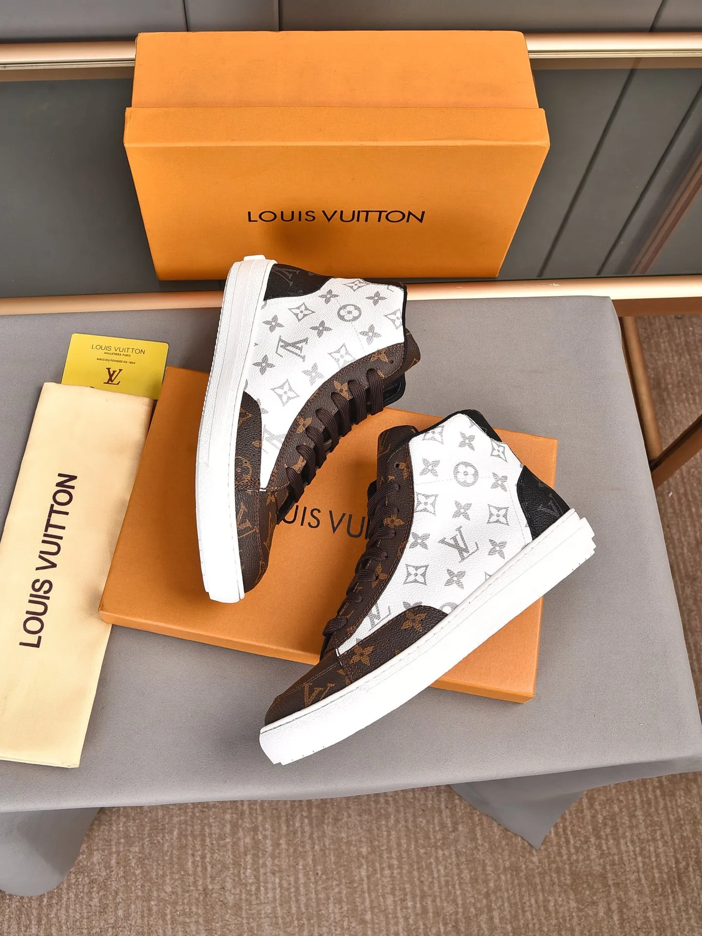 Replica Louis Vuitton High Tops Shoes For Men #1408219 Wholeale Only $85.00 USD outlet! Gender MenSize US 4=EUR(38), US 5=EUR(39), US 6=EUR(40), US 7=EUR(41), US 8=EUR(42), US 9=EUR(43), US 10=EUR(44), Wholesale Replica Louis Vuitton High Tops Shoes latest arrivals enjoy free shipping and save up 70% OFF with best quality! Cheap Louis Vuitton High Tops Shoes For Men #1408219 Replica Wholesale [$85.00 USD] [ITEM#1408219] on Replica Louis Vuitton High Tops Shoes
