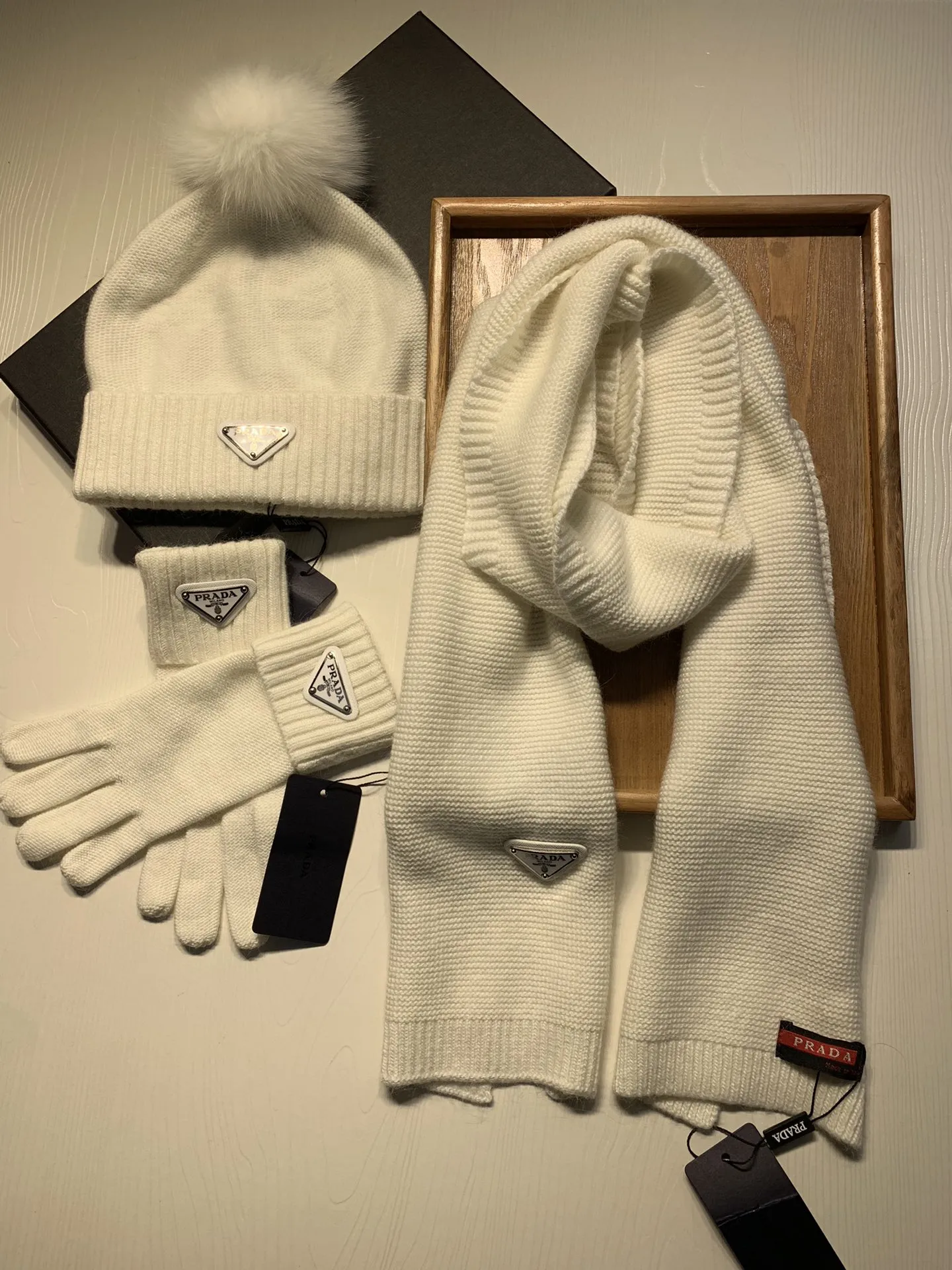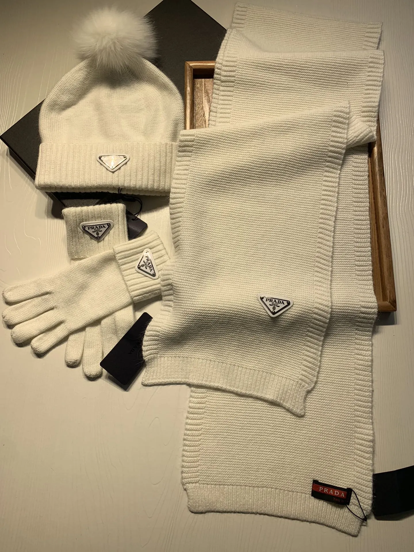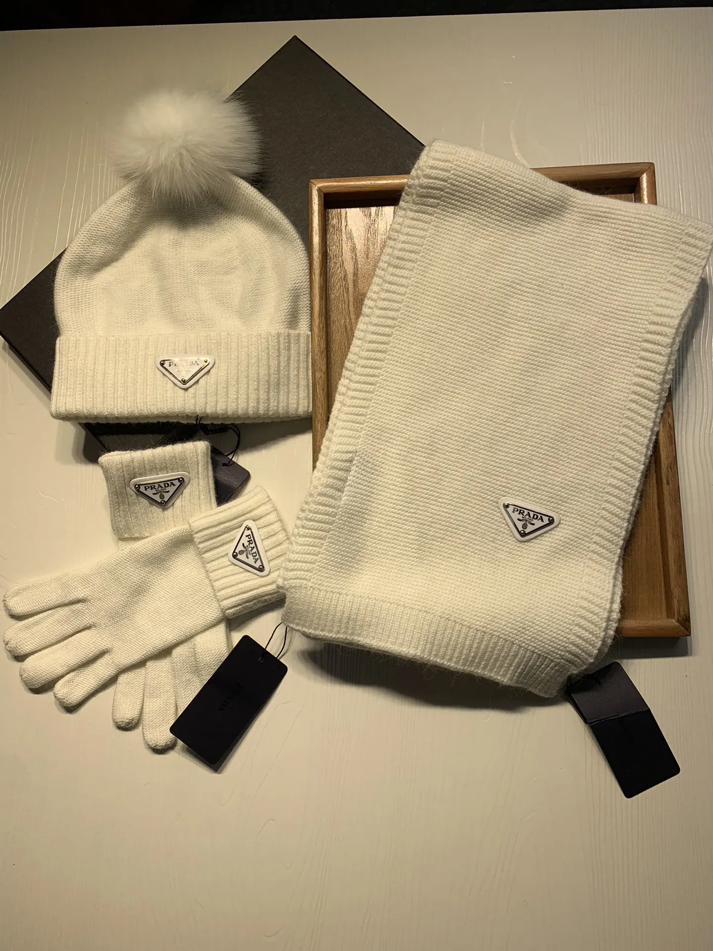 Replica Prada Hat and Scarf and Glove Set with best quality.