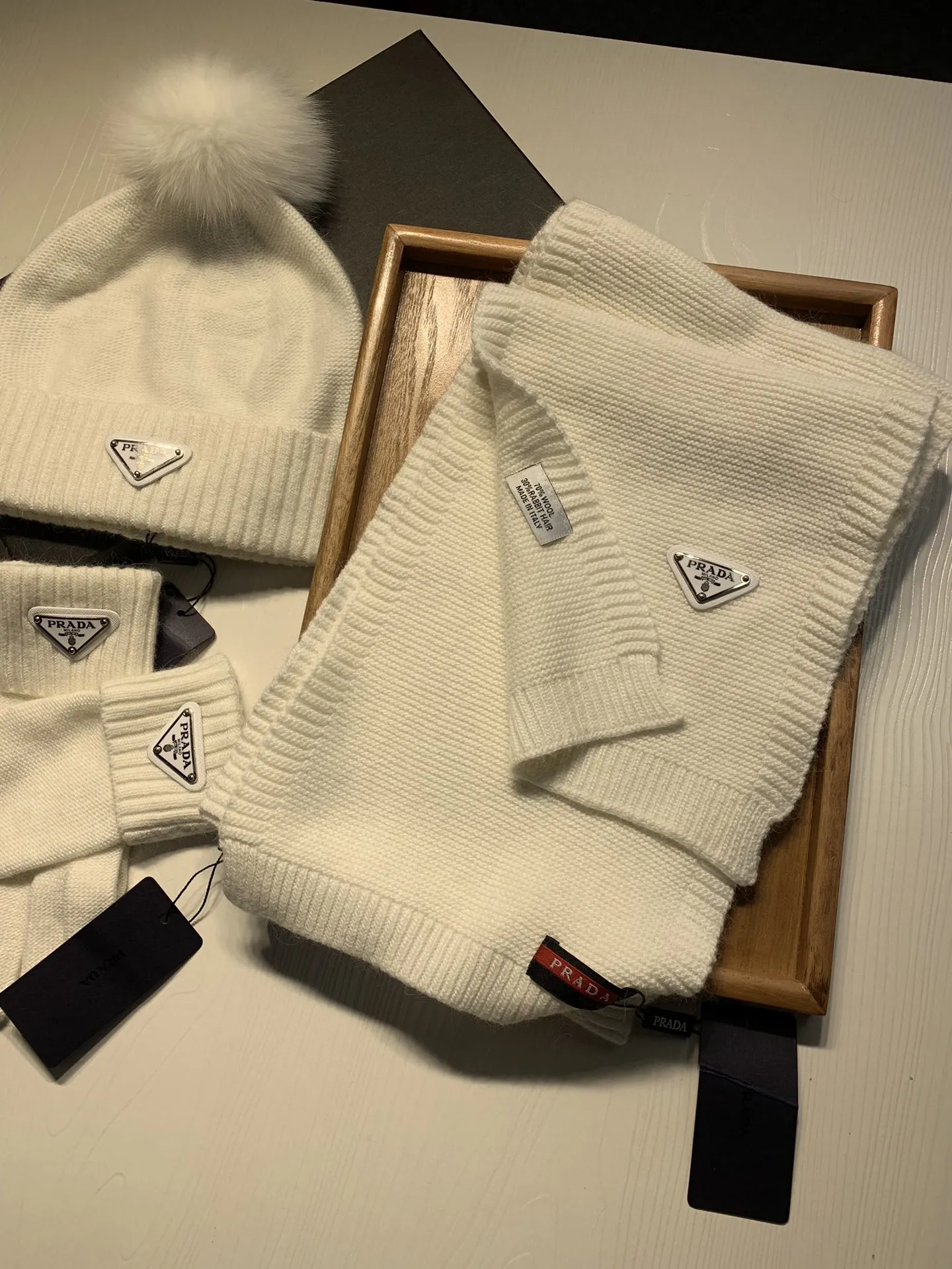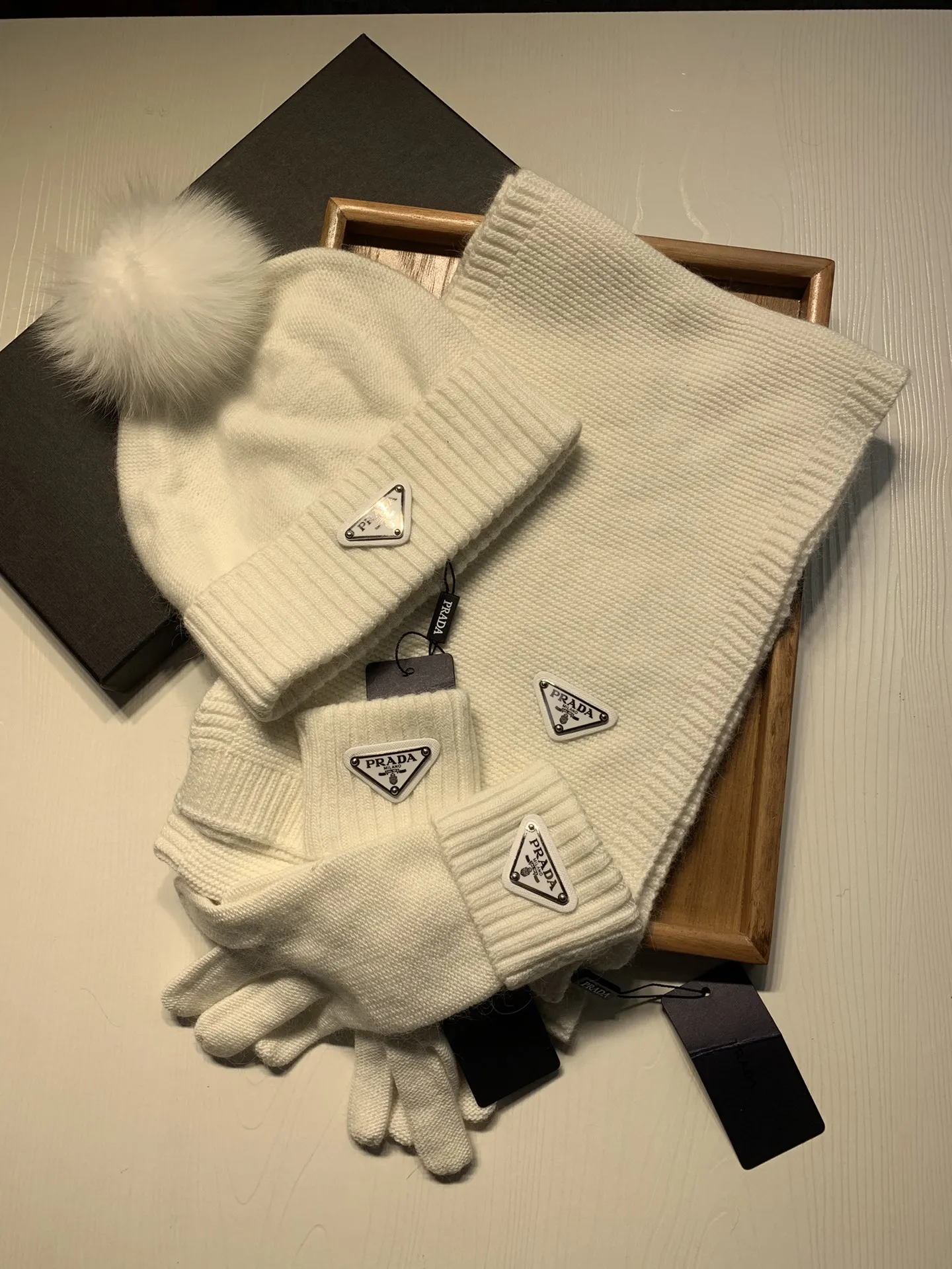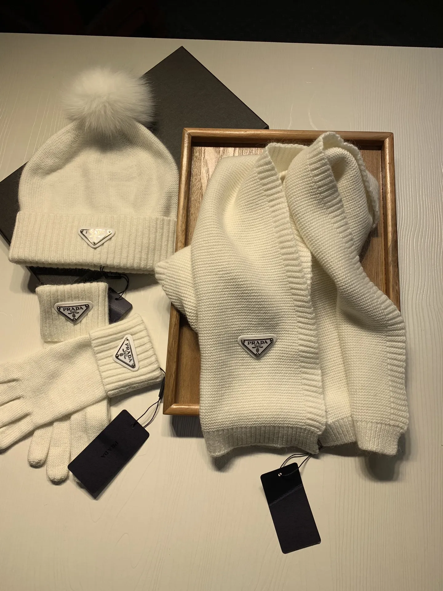Replica Prada Hat and Scarf and Glove Set with best quality.