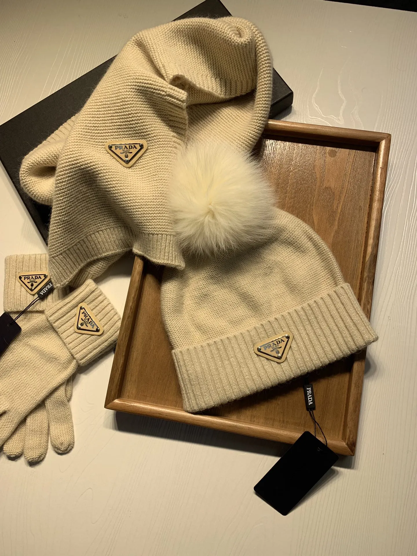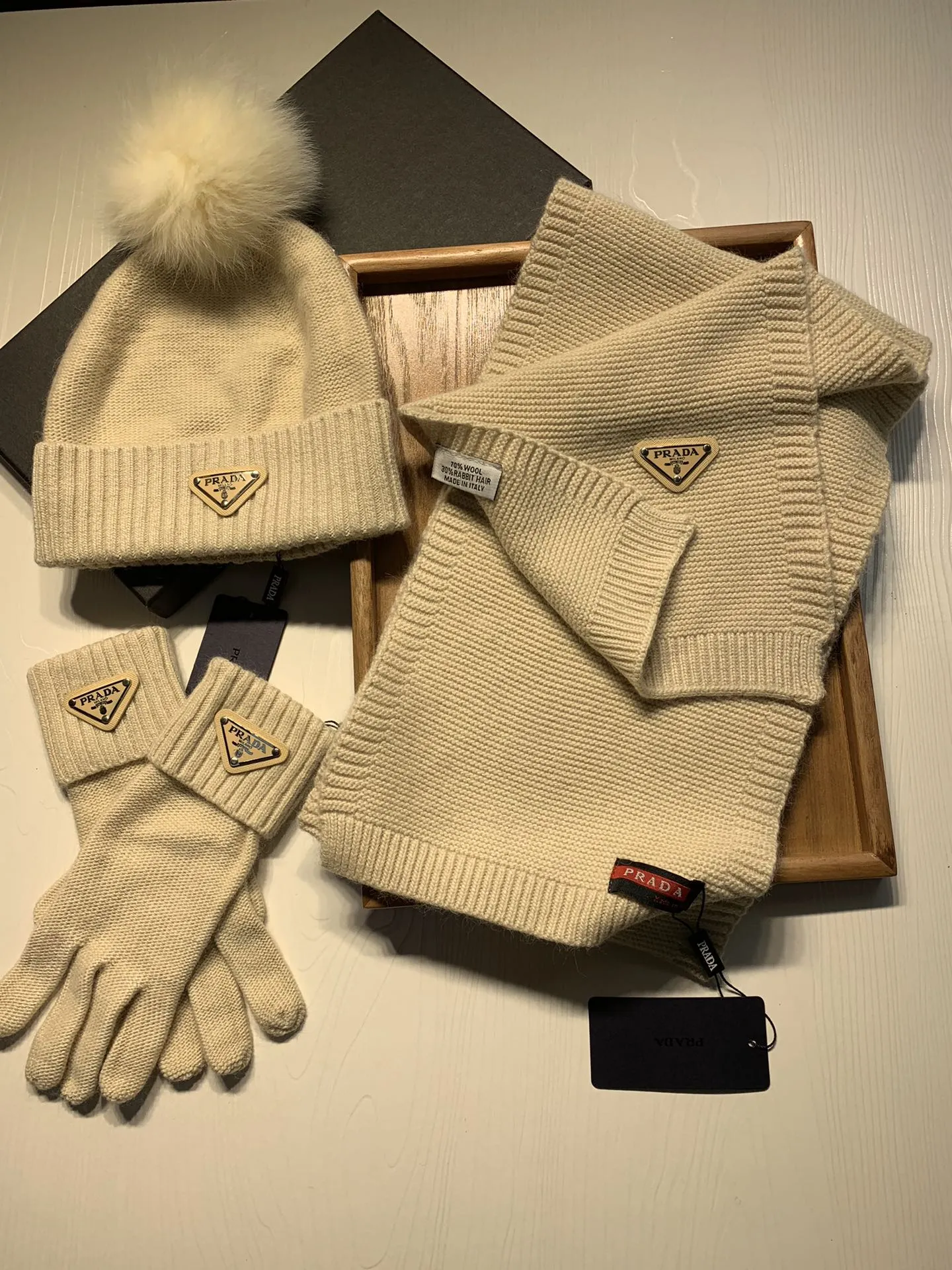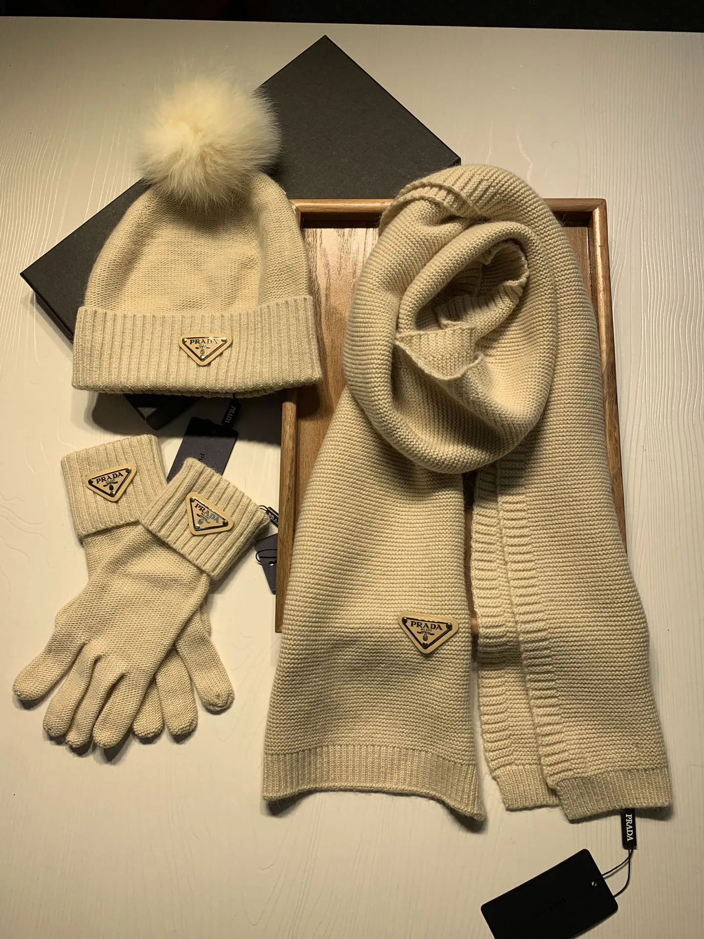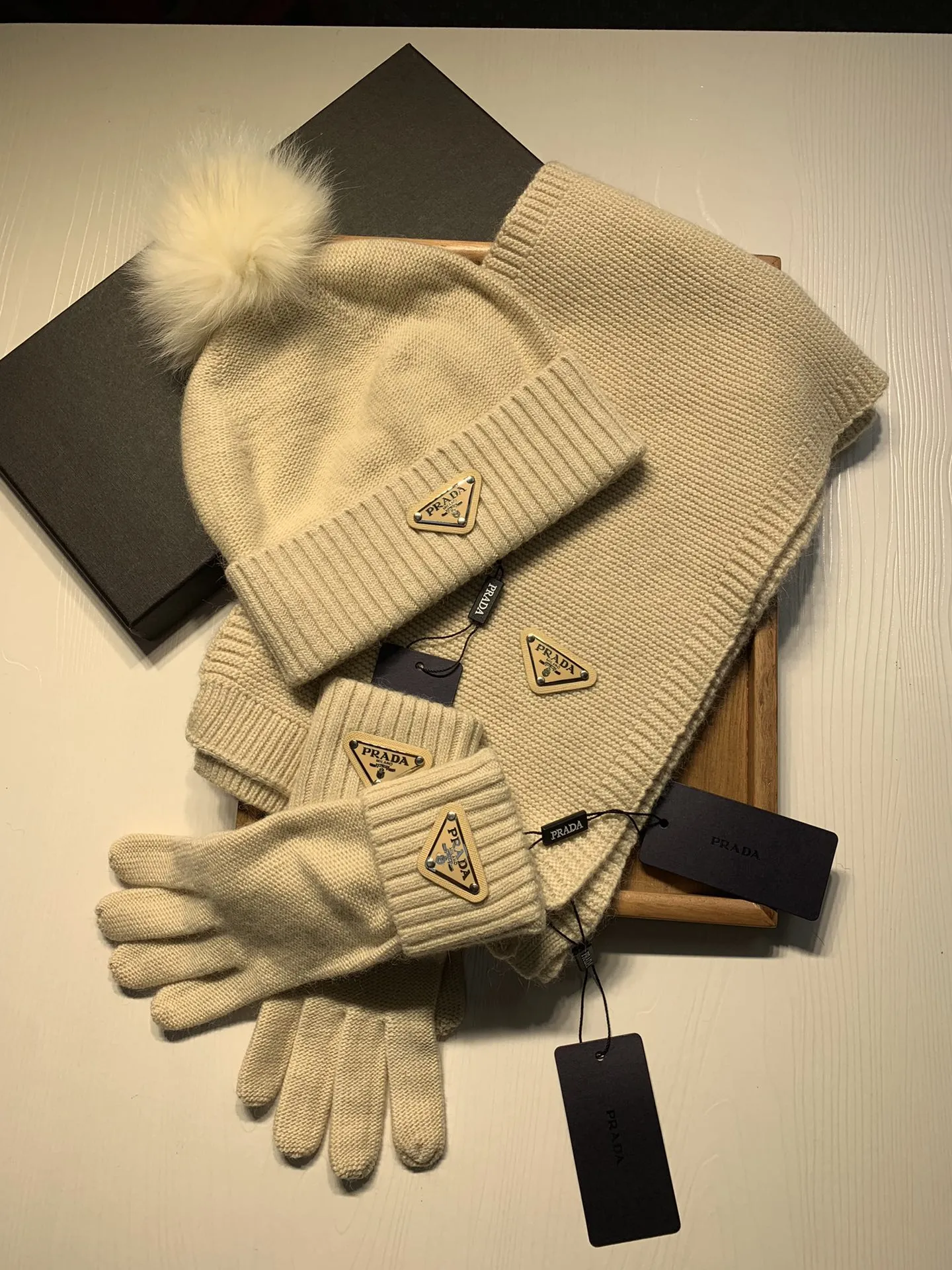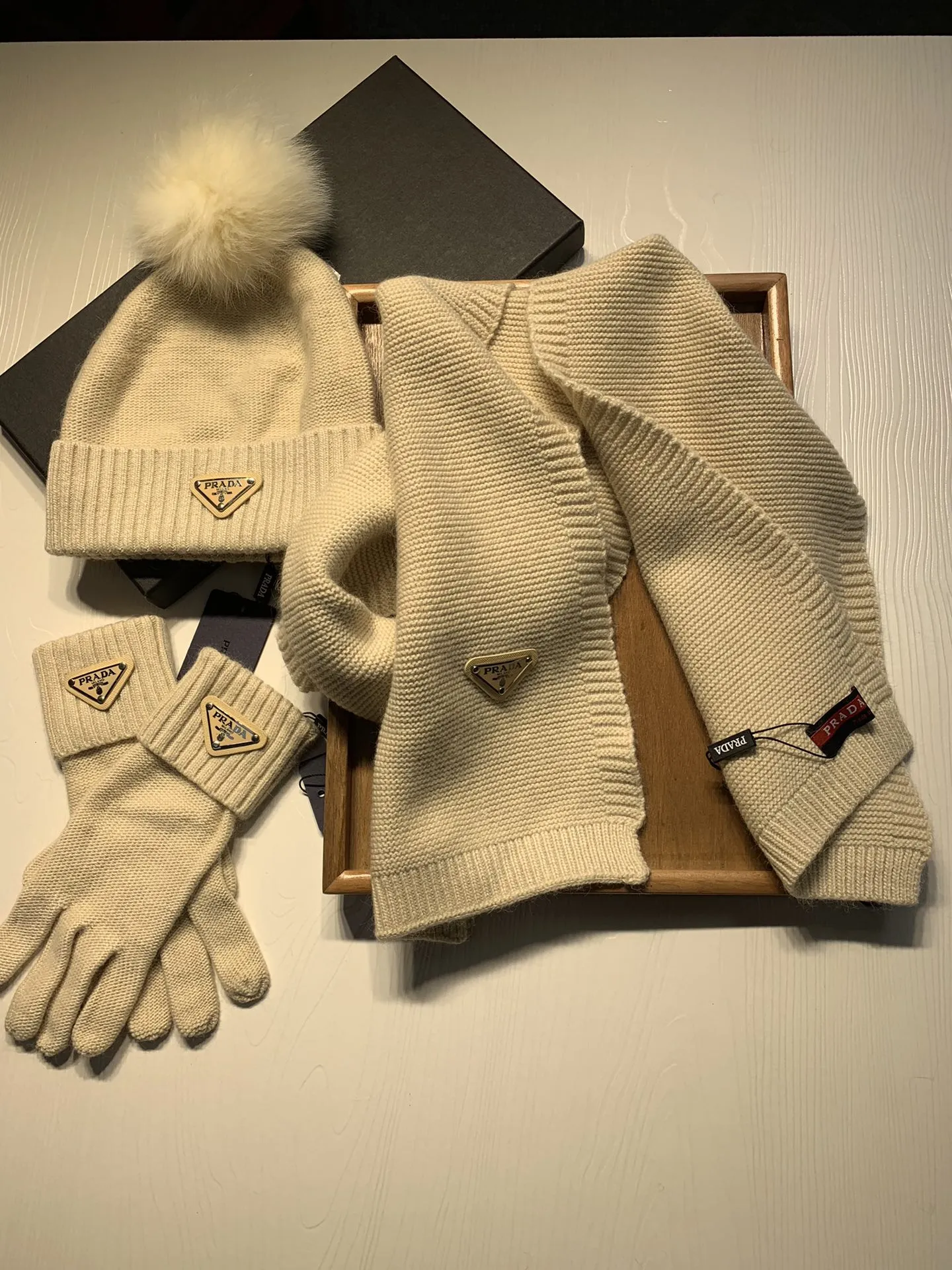 Replica Prada Hat and Scarf and Glove Set with best quality.