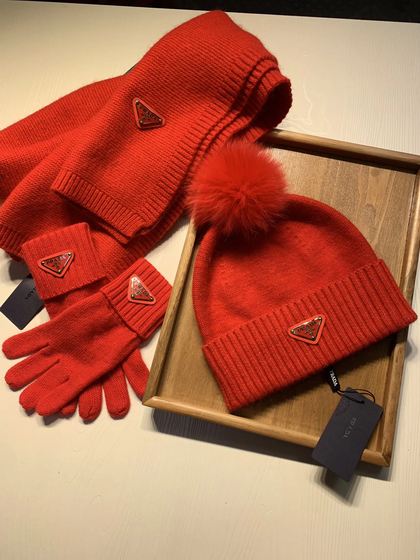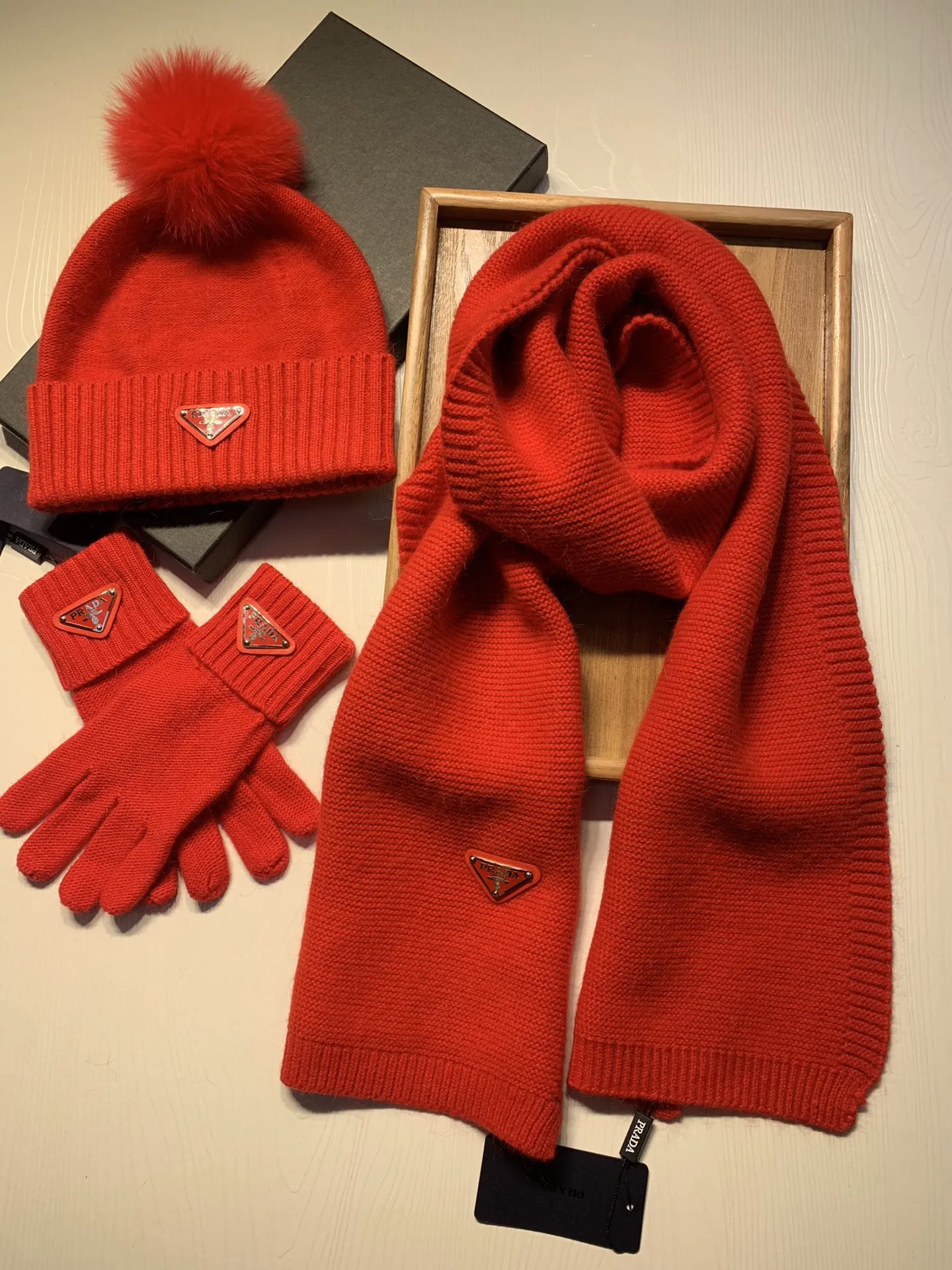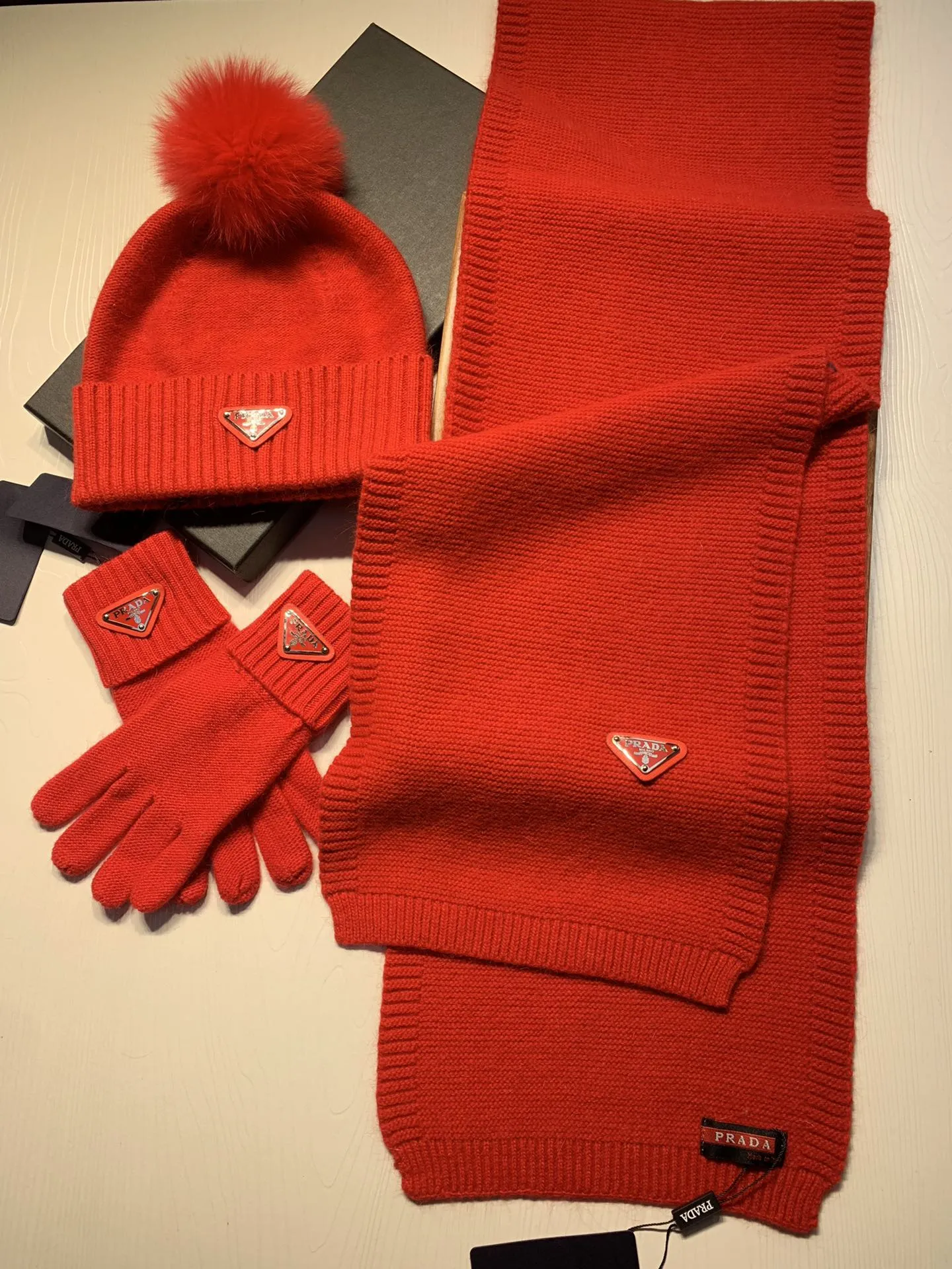 Replica Prada Hat and Scarf and Glove Set with best quality.