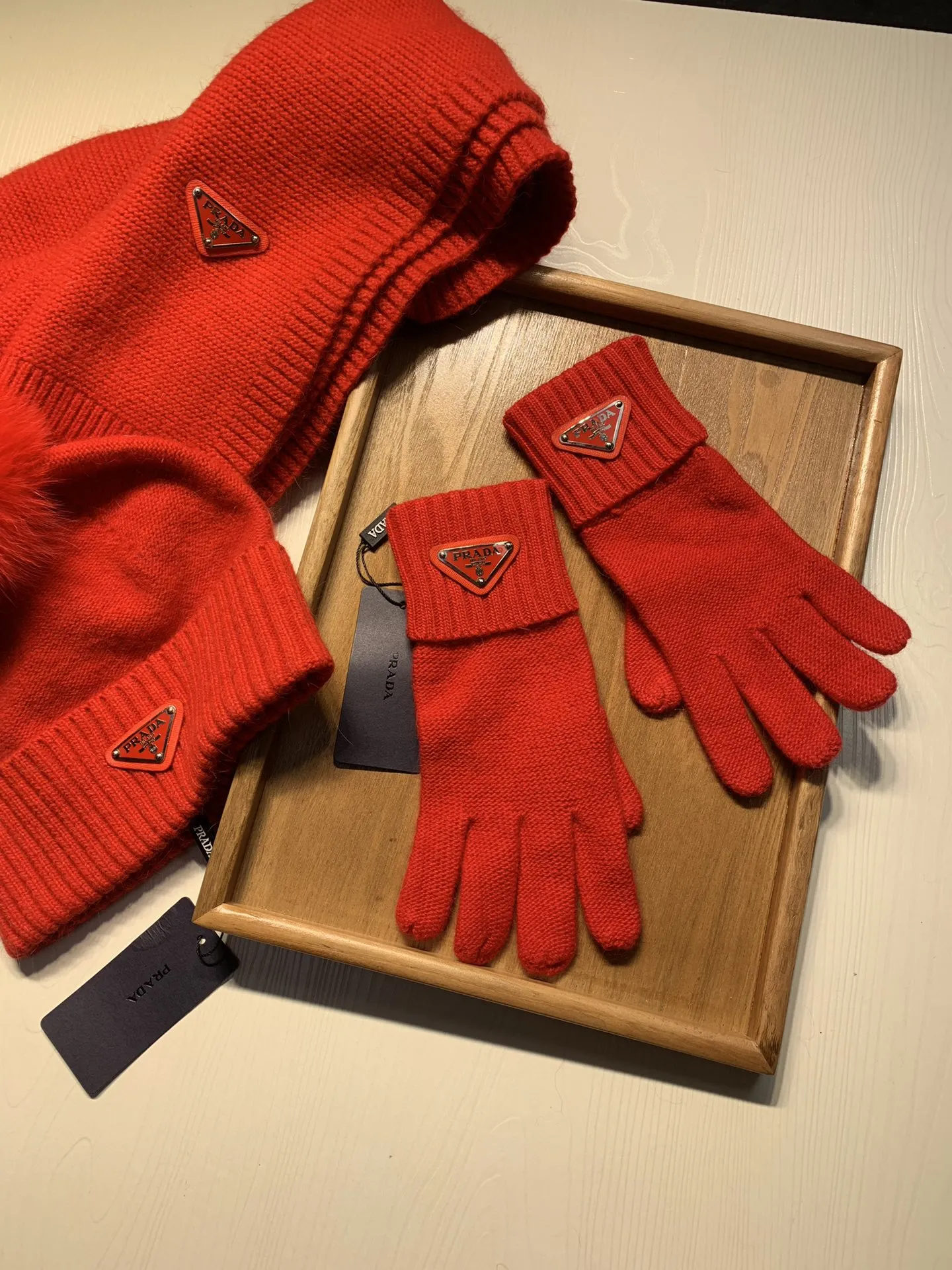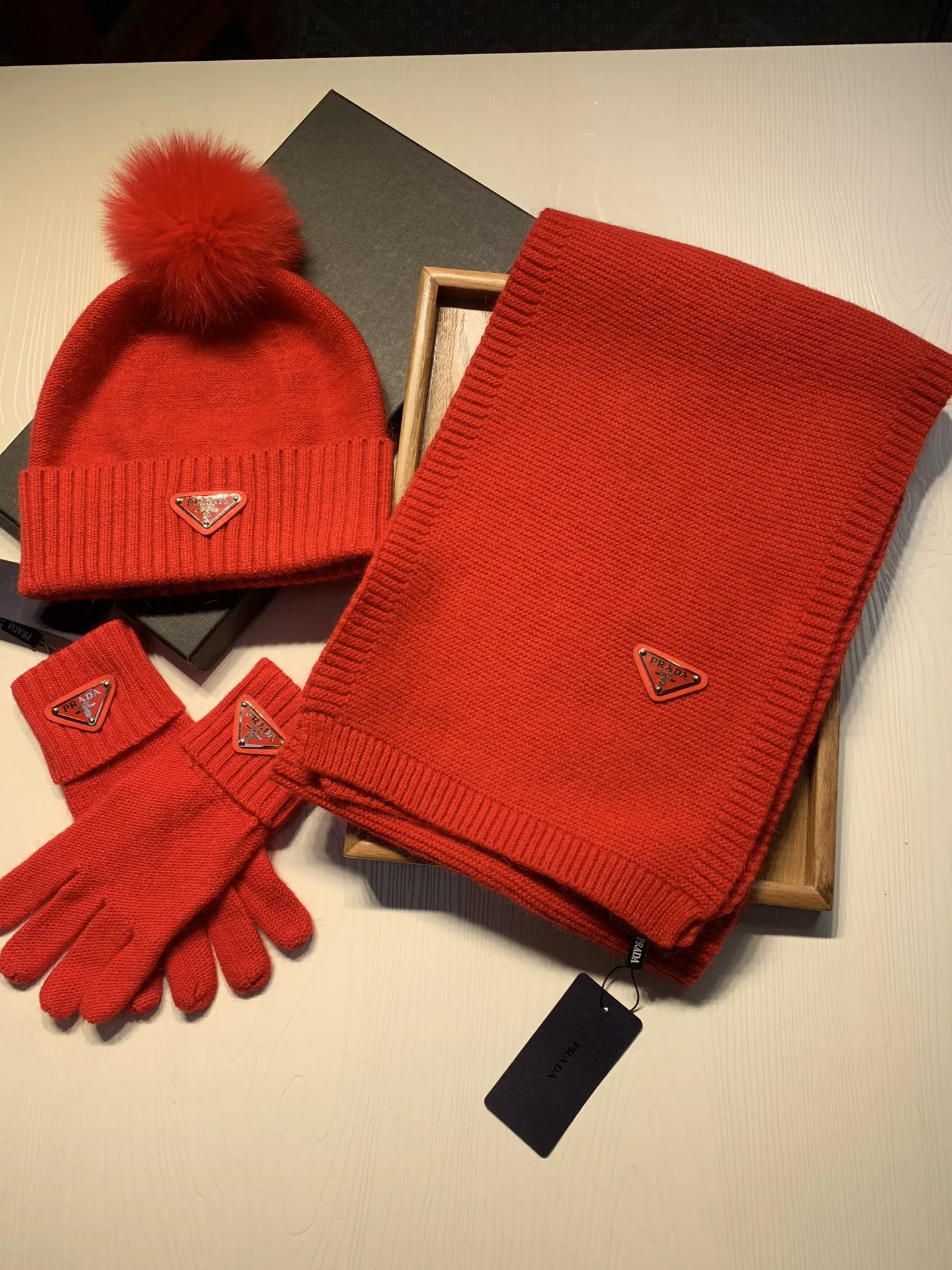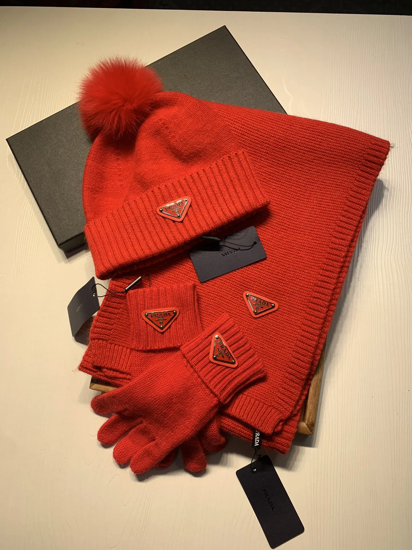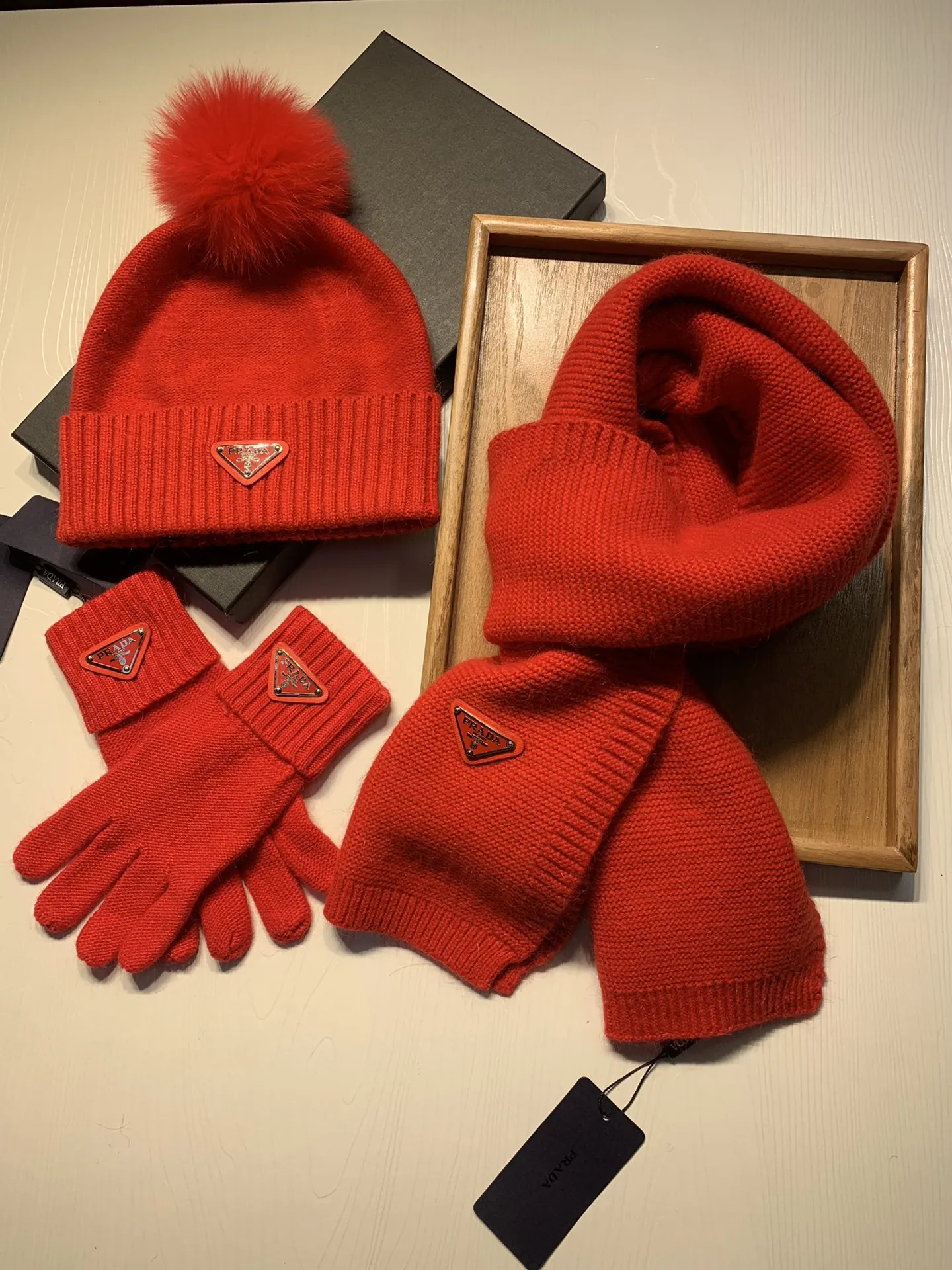 Replica Prada Hat and Scarf and Glove Set with best quality.