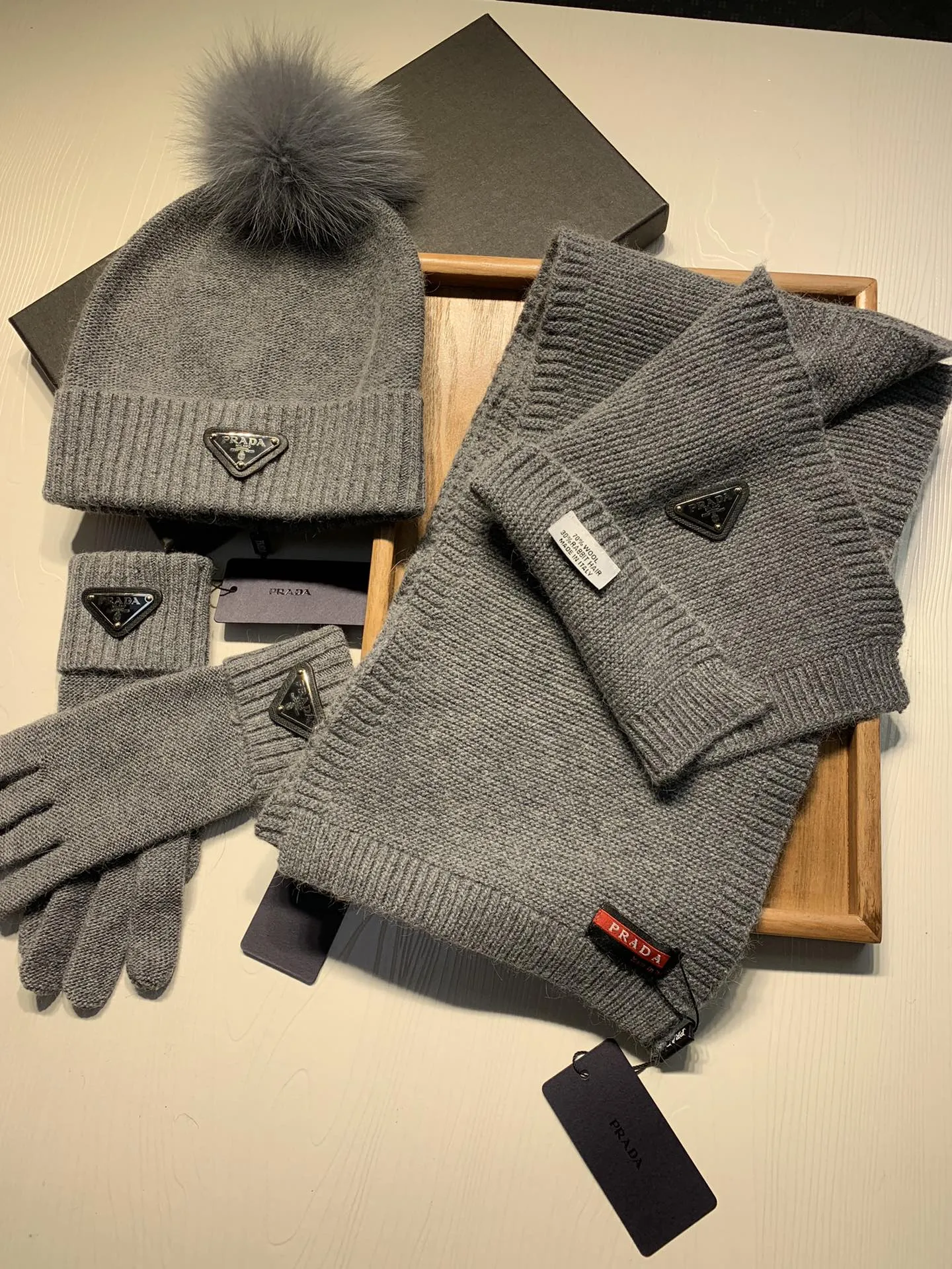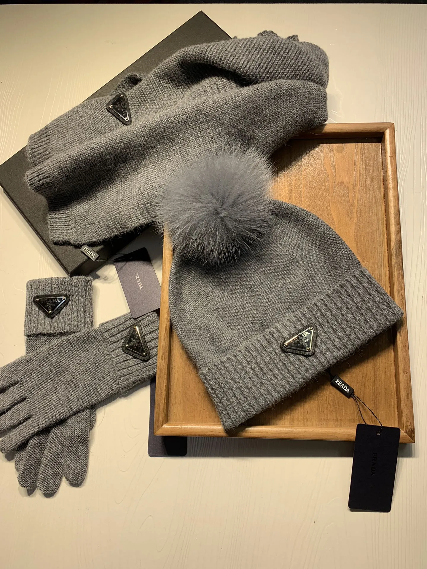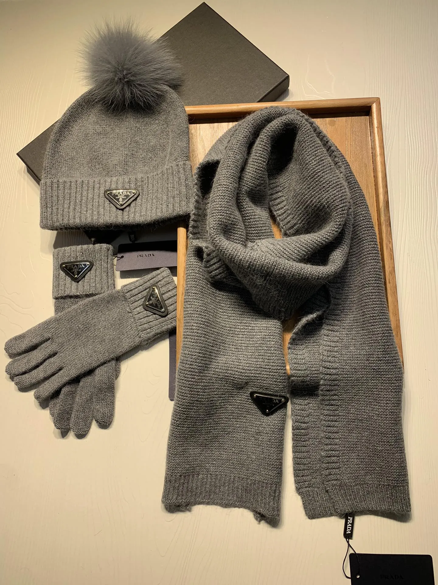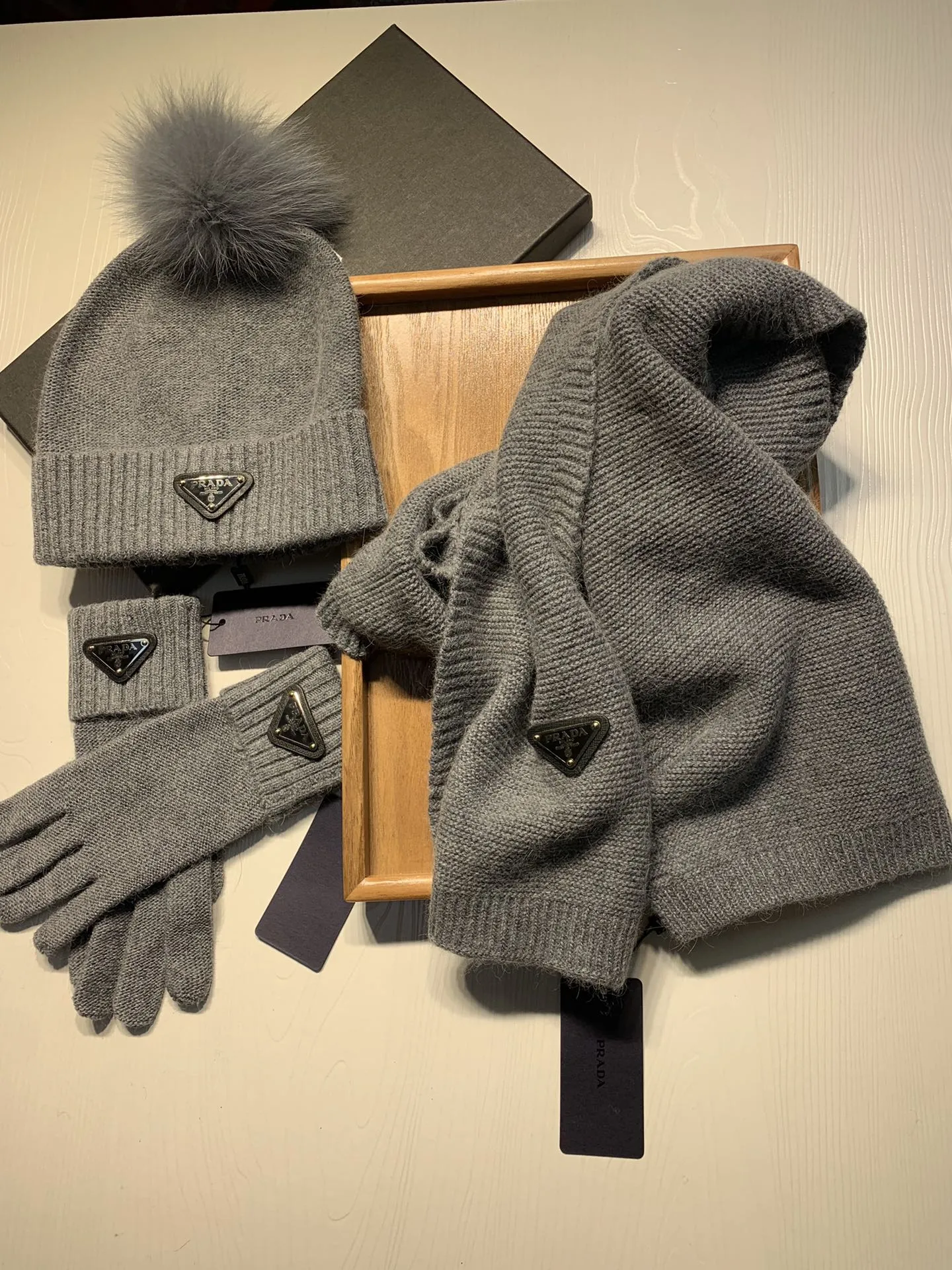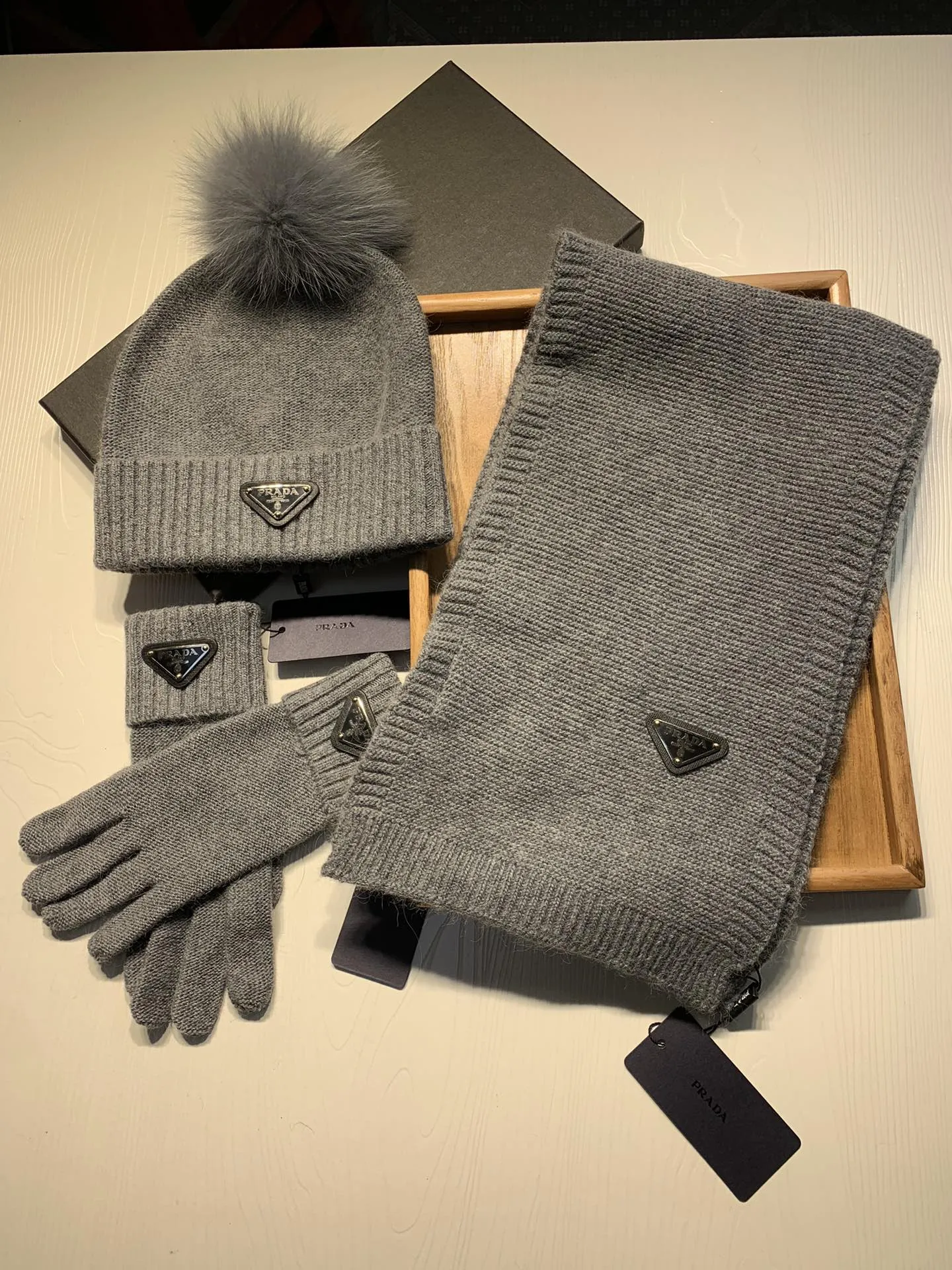 Replica Prada Hat and Scarf and Glove Set with best quality.