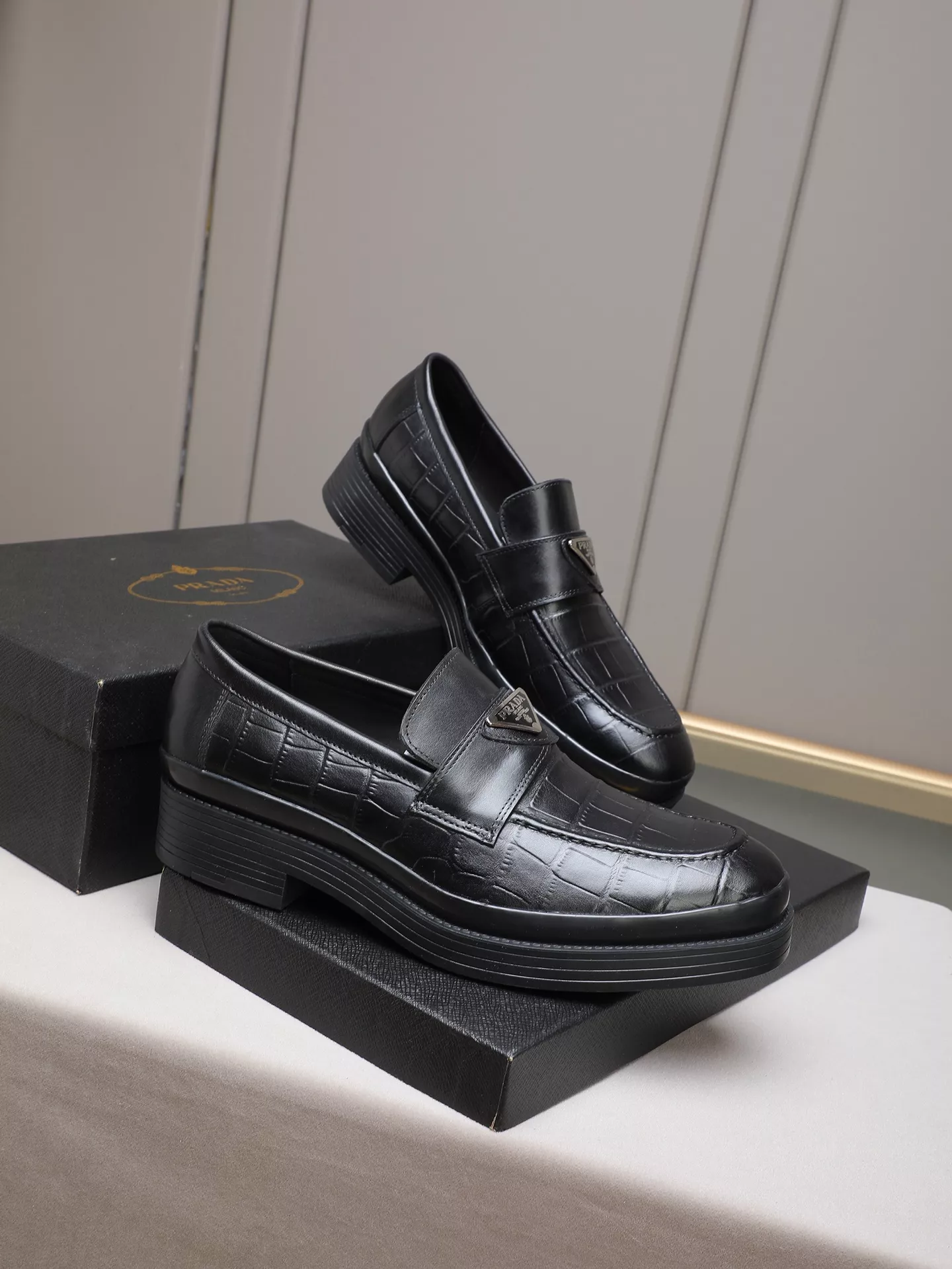 Replica Prada Leather Shoes with best quality.