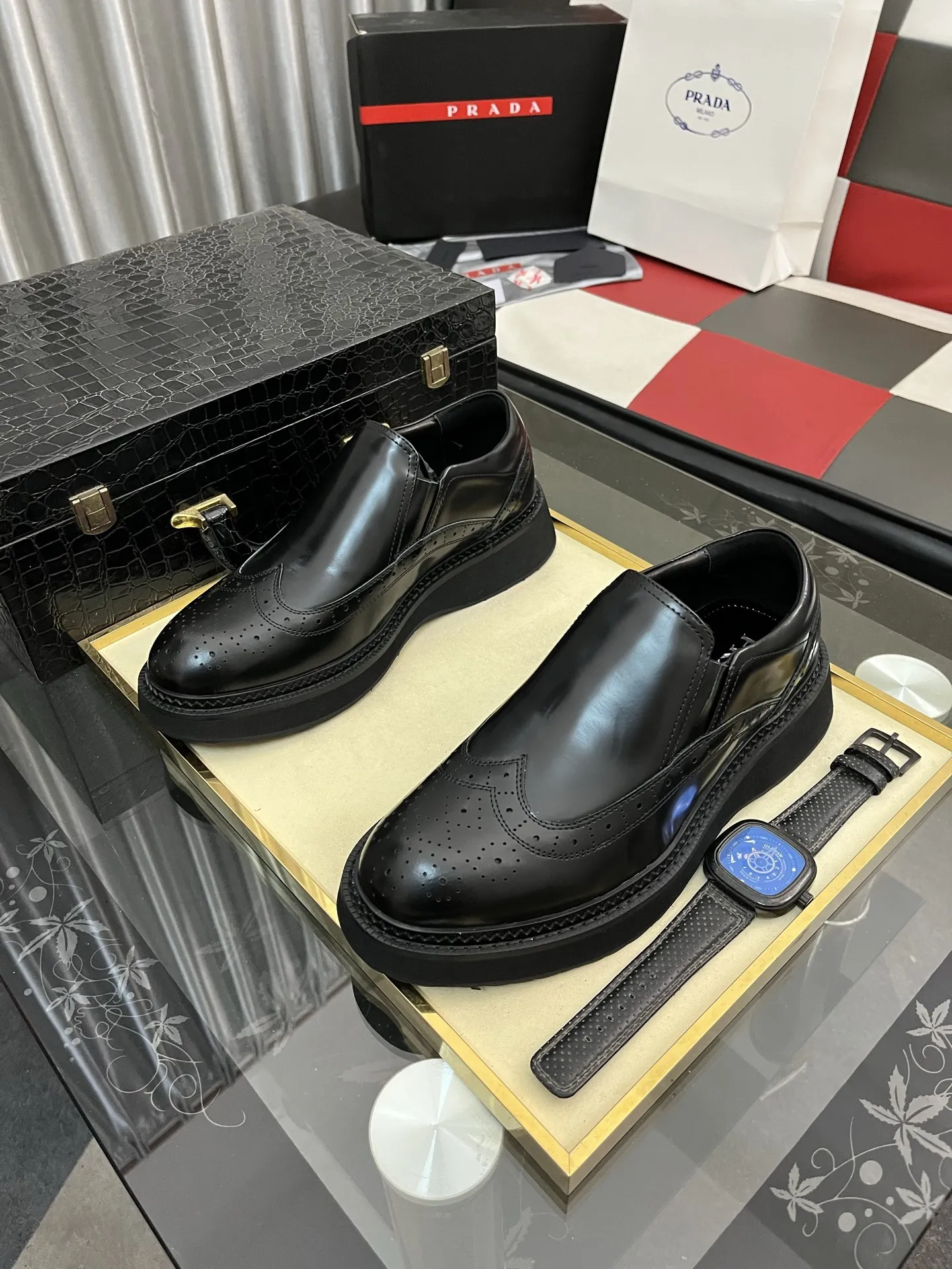 Replica Prada Leather Shoes with best quality.