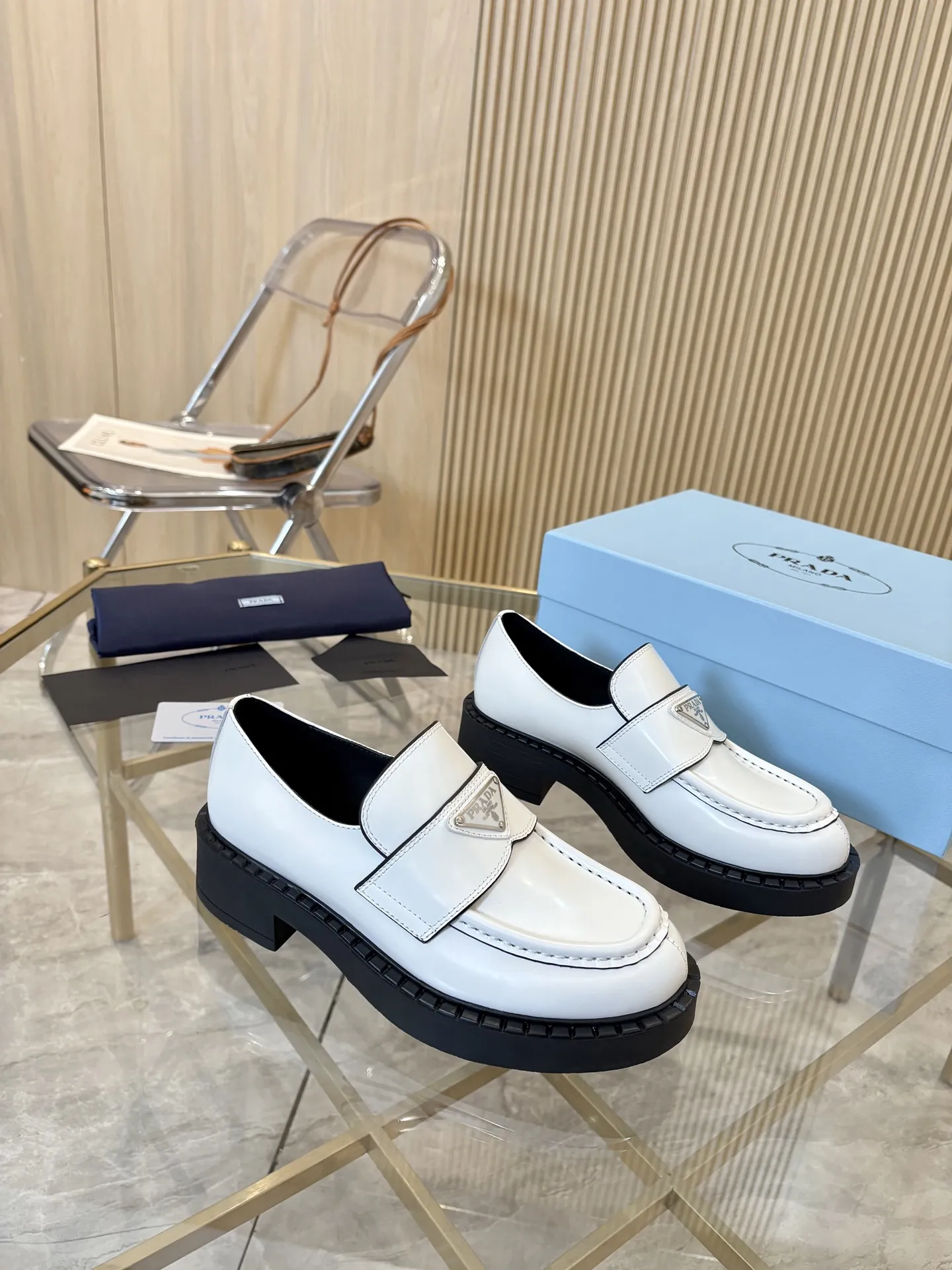 Replica Prada Leather Shoes with best quality.