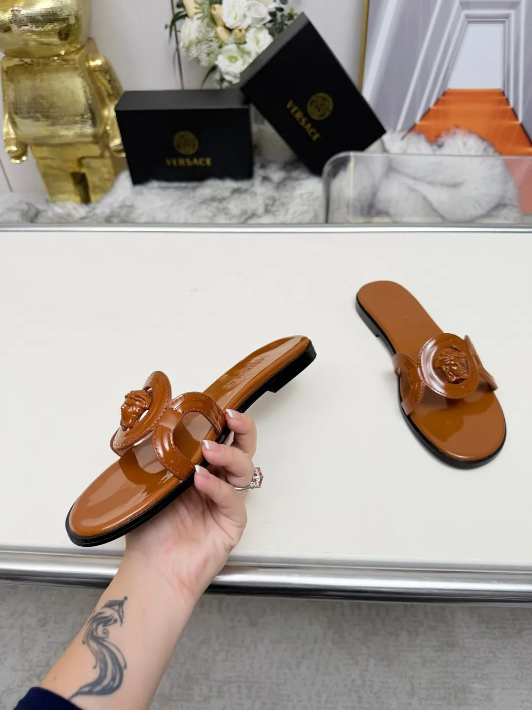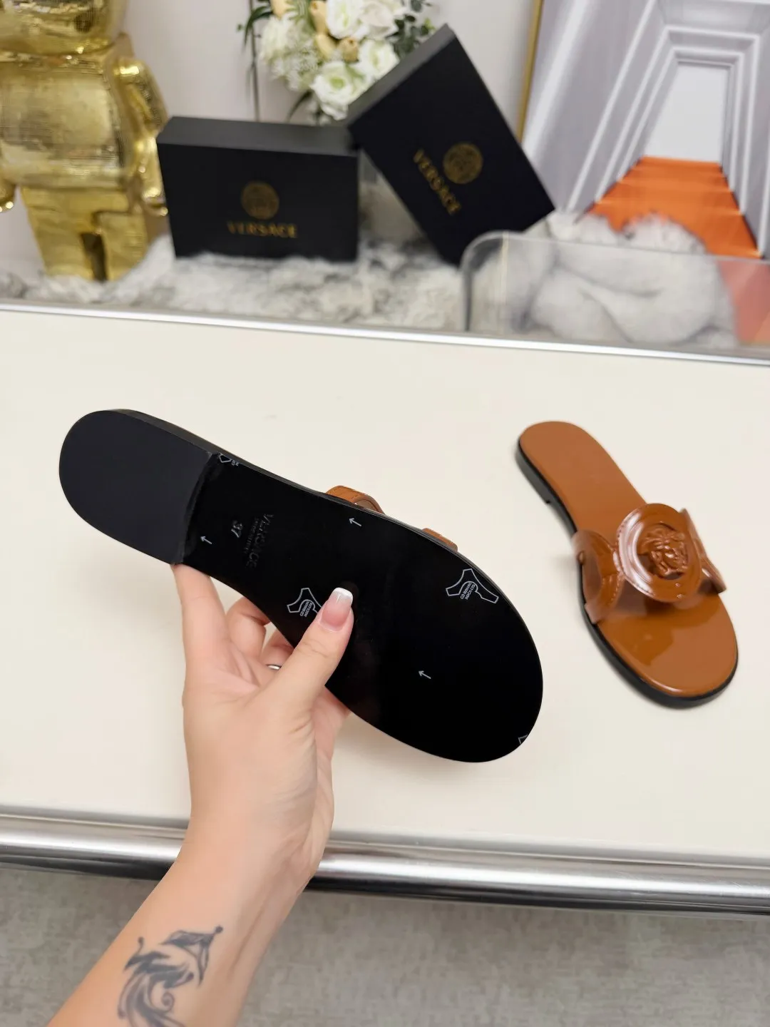 Replica Versace Slippers For Women #1392806 Wholeale Only $82.00 USD outlet! Gender WomenSize US 5=EUR(35), US 5.5=EUR(36), US 6=EUR(37), US 7=EUR(38), US 8=EUR(39), US 8.5=EUR(40), Wholesale Replica Versace Slippers latest arrivals enjoy free shipping and save up 70% OFF with best quality! Cheap Versace Slippers For Women #1392806 Replica Wholesale [$82.00 USD] [ITEM#1392806] on Replica Versace Slippers